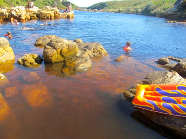 4. There's a beautiful river here at the mouth with little rock pools and warm, cool water to swim in. Benjamin swam alone (even in the deep end mommy) for the first time with his little water wings. I was super proud.